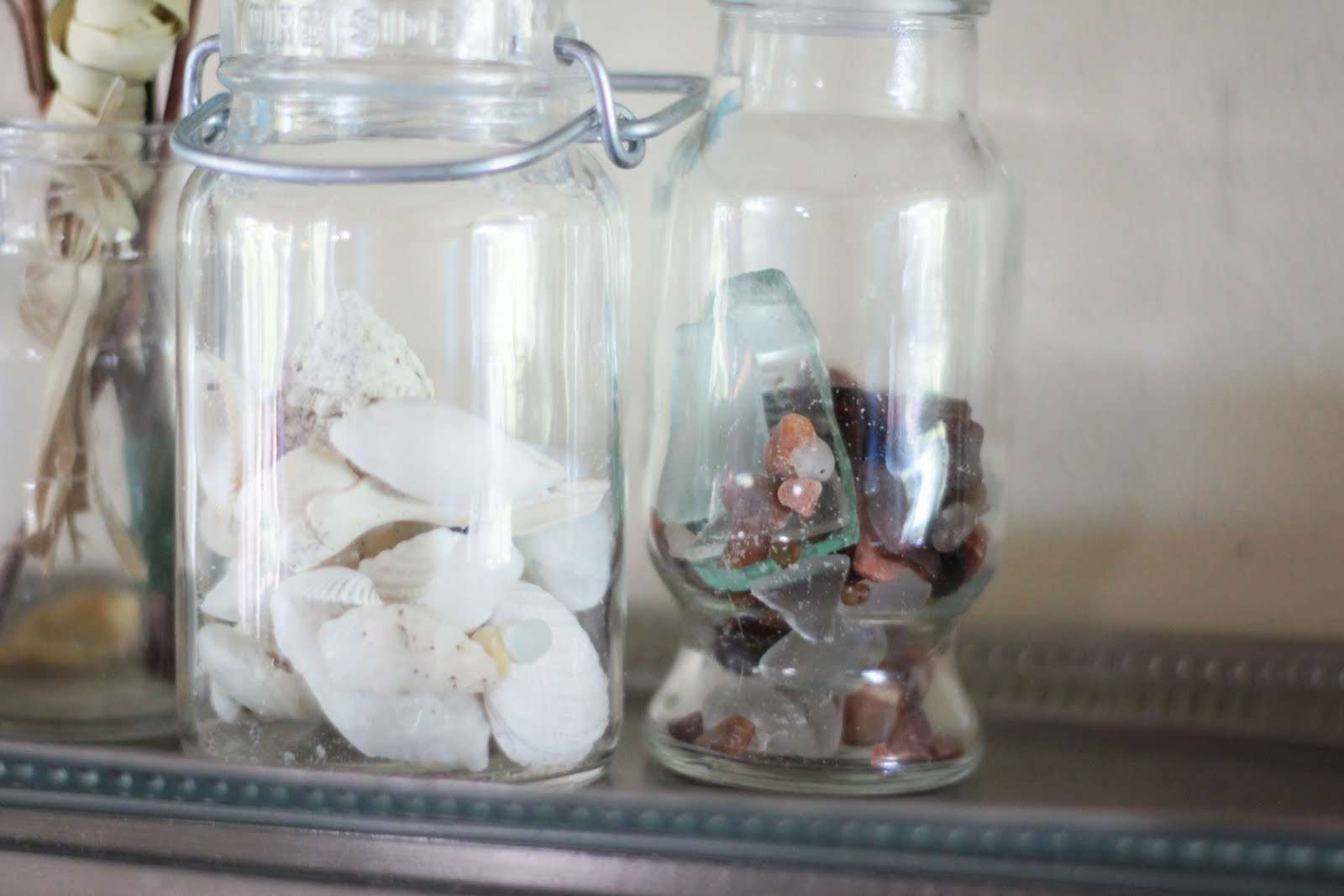 And I couldn't resist finishing off this simple little robin's egg blue vase with some shells around the rim.